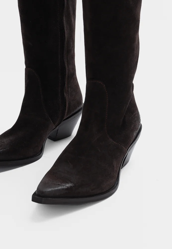 Josie støvlen i farven Mocca Brown er en elegant og klassisk støvle i blødt ruskind. Den er foret med læder, hvilket giver en behagelig pasform og høj komfort. Tunit-sålen sikrer et solidt og stabilt grundlag, mens det enkle design gør støvlen nem at style til både hverdag og mere formelle lejligheder. Et tidløst valg, der kombinerer stil og funktion.