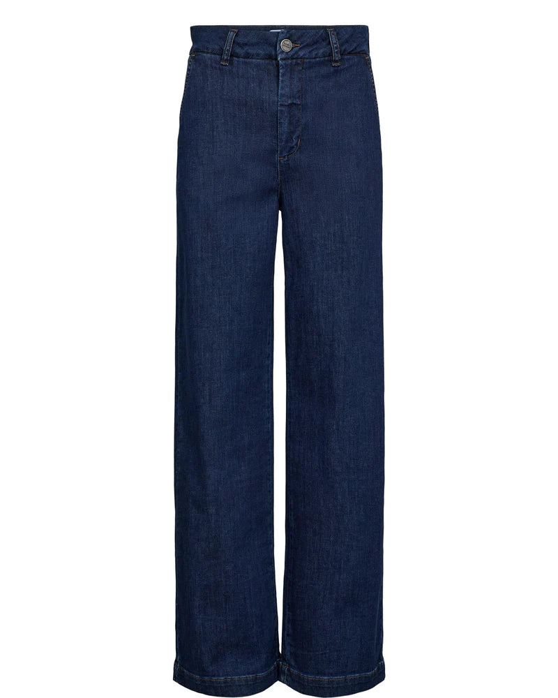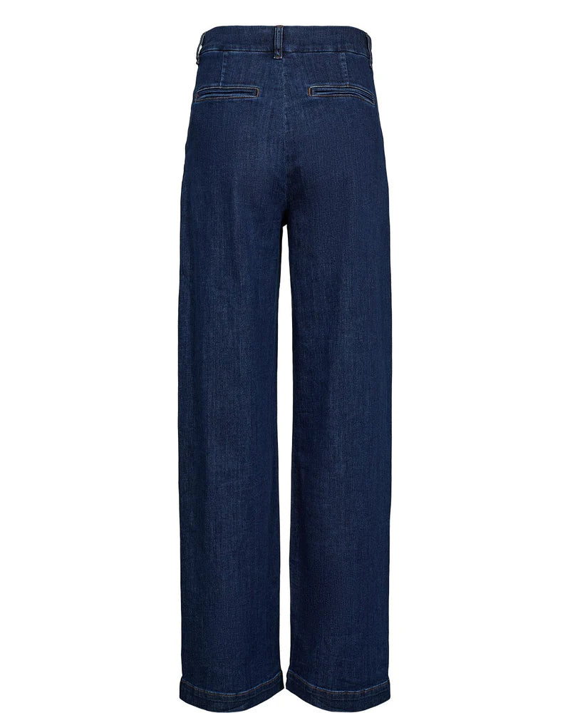 Nuamber Pants i farven Dark blue er højtaljede wide-leg bukser med et moderne og komfortabelt snit. Med 2 % elastan i stoffet får du ekstra bevægelsesfrihed, mens den iøjnefaldende silhuet giver et elegant udtryk. Ideelle til lag-på-lag styling eller som statementsæt sammen med en crop top og blazer.