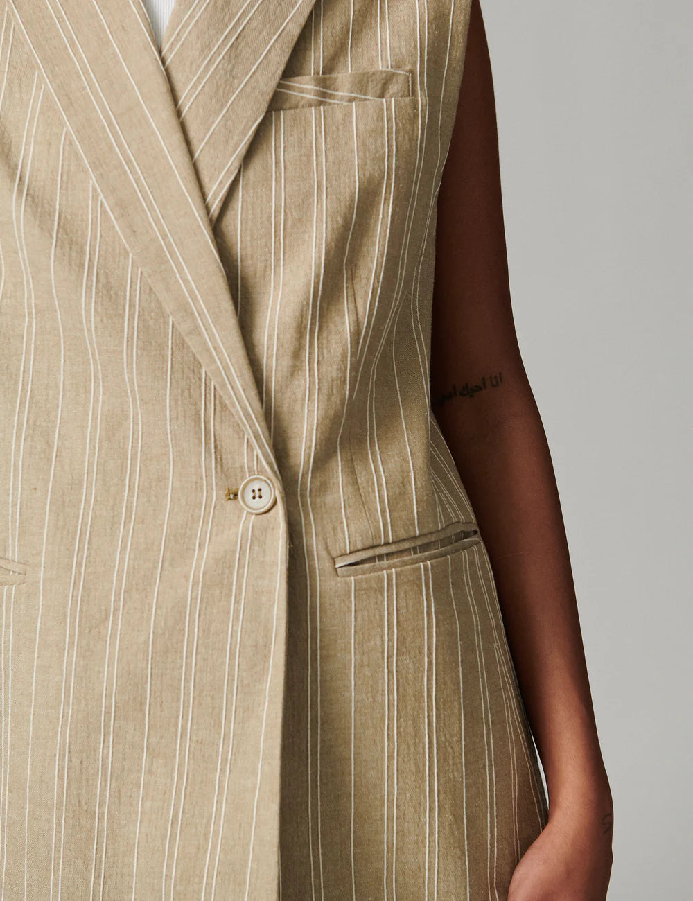 Denne oversized, ærmeløse vest har knaplukning foran samt en ekstra lang åbning bagpå med knapper. Vesten er designet med to forlommer og en brystlomme samt en indvendig lomme. Style den med en pencil skirt for et skræddersyet og poleret look.