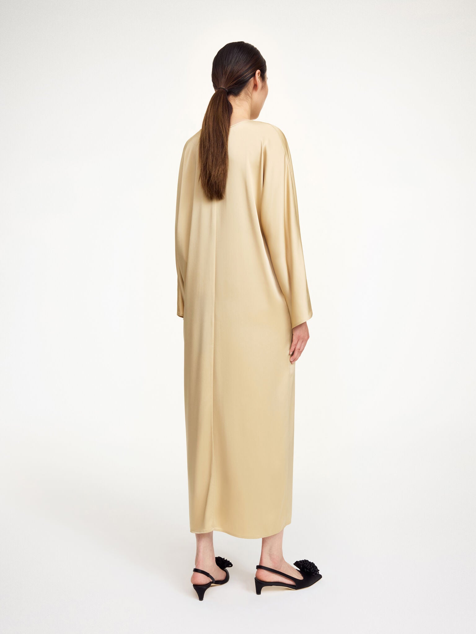 Den rolige, flydende silhuet gør kjolen alsidig – nem at style op med hæle og smykker til fest, eller ned med flade sandaler for et afslappet, sofistikeret udtryk.