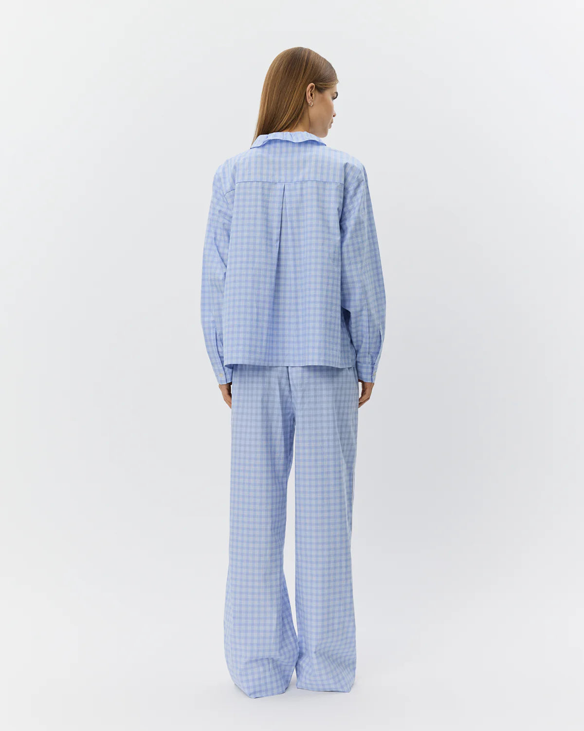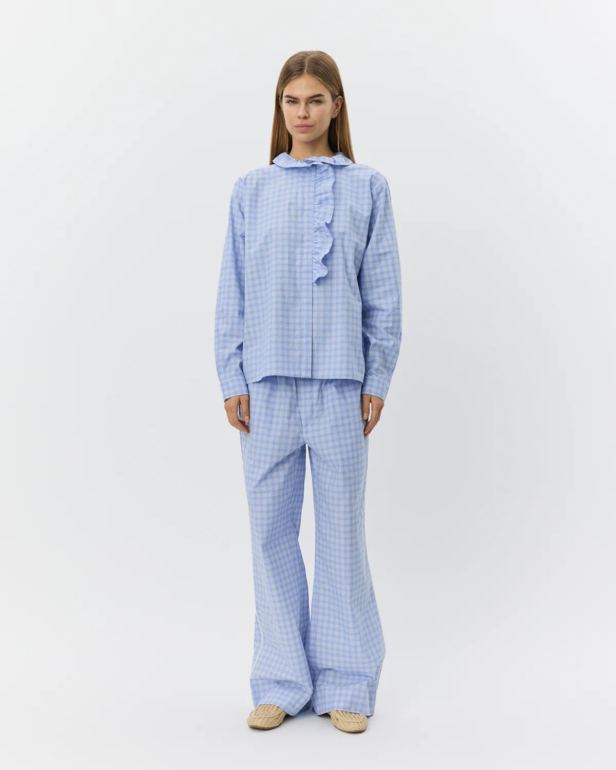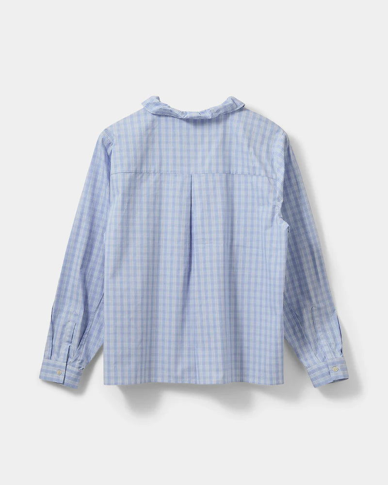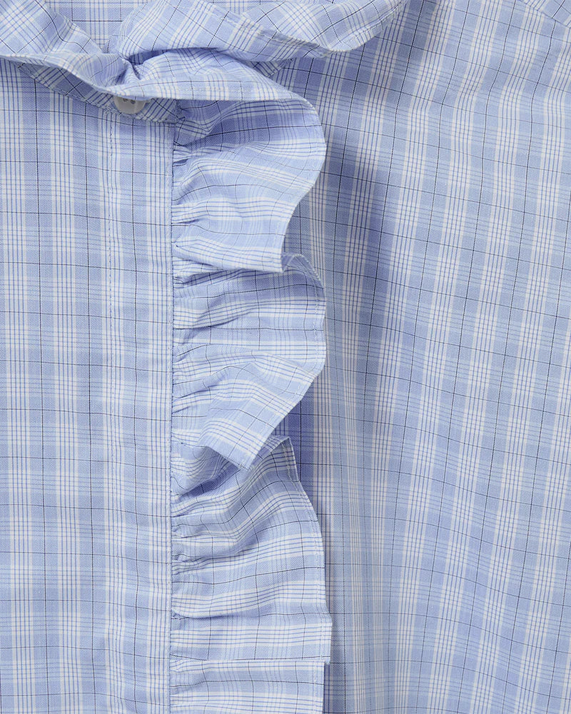 BelleSW er en feminin skjorte med klassisk ternet mønster og dekorative flæsedetaljer, som giver et elegant og tidløst udtryk. Skjorten er designet med en let oversized pasform, knaplukning foran og blød krave, som understreger det romantiske look. Flæserne tilfører en subtil, levende dimension til skjortens silhuet og gør den velegnet til både hverdagsstil og mere polerede outfits.